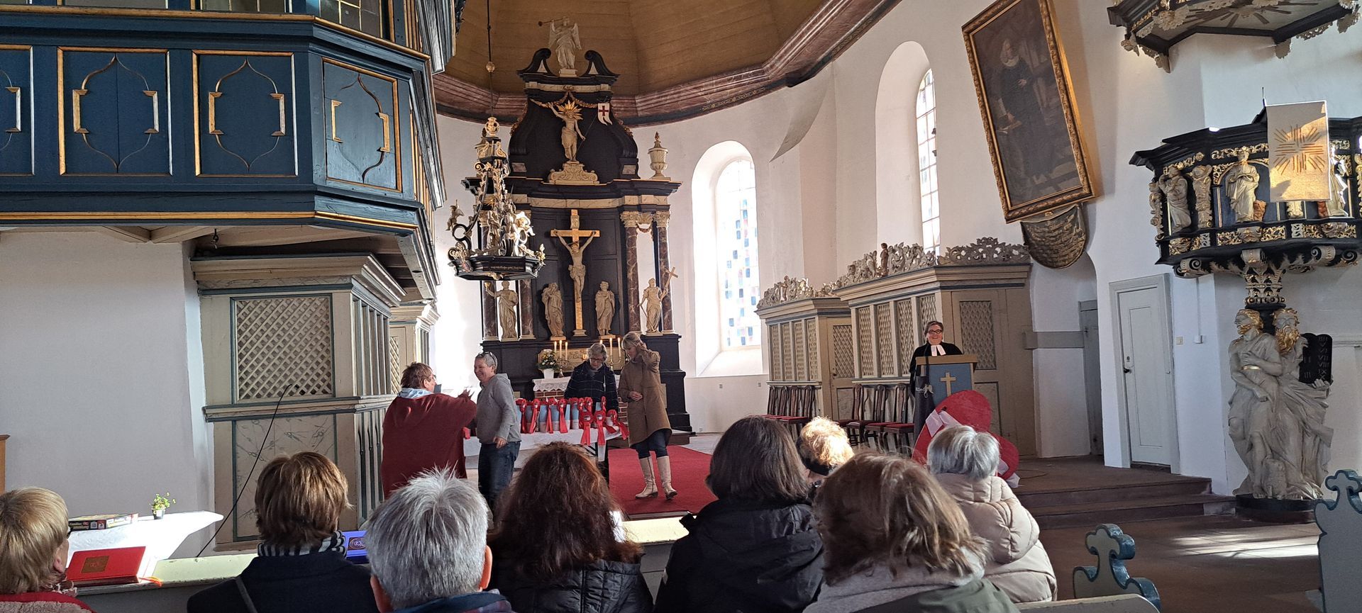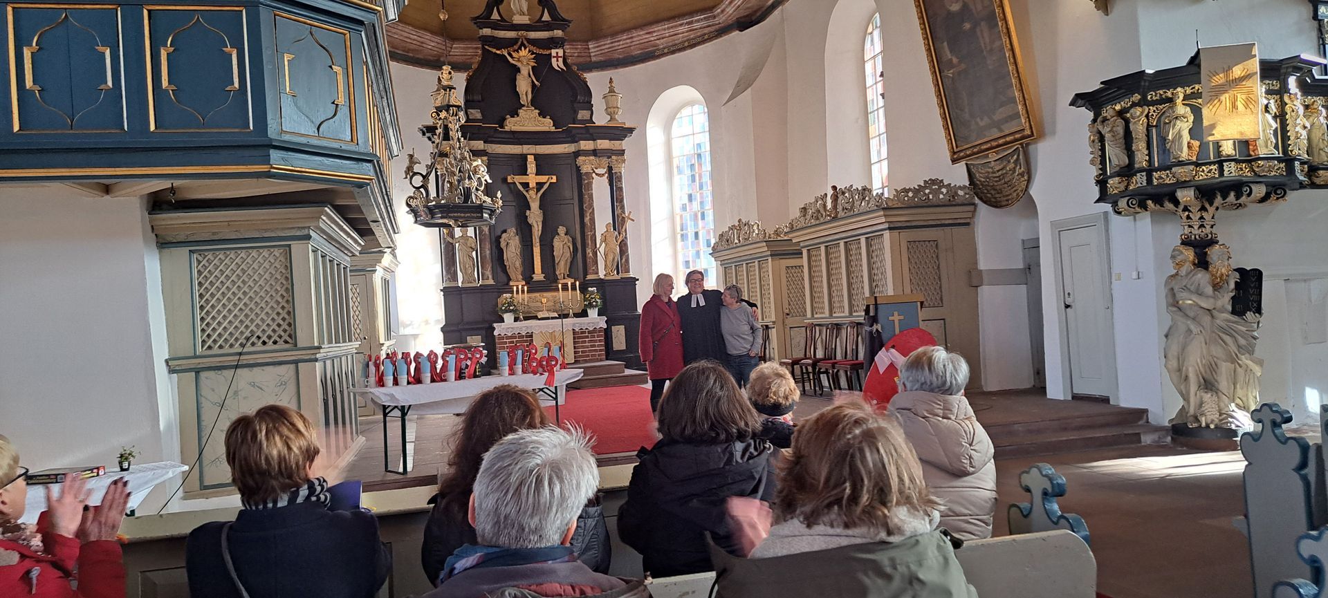 Drei Wochen lang, vom 08. bis 26. Januar wurde in der Wesselburener St. Bartholomäuskirche die Aktion „Mohltied“ angeboten. Dieser sonntägliche Gottesdienst beinhaltete einen großen Dank an alle Mitwirkende. Den Sponsoren und Helfer*innen. Pastorin Ina Brinkmann begrüßte die von Gottesdienstbesuchern gut gefüllte Kirche. Sie war, wie auch der KGR, wie auch die Gottesdienstbesucher erfüllt von dem sehr guten Zuspruch zu „Mohltied“. Sie dankte auch dem Probst und der Diakonie Dithmarschens, die ihrem Vorschlag gefolgt und diesen stark unterstützt haben. Zusammen mit Claudia Steinseifer und Frauke Düßmann hatten die Pastorin diese Aktion geplant und ins Leben gerufen. Pastorin Brinkmann konnte folgende Zahlen aufführen: es kamen 1.155 Gäste, es wurden 943 Speisen verteilt, 817 Becher Kaffee ausgeschenkt, 510 Stück Kuchen verteilt in diesen drei Wochen. Insofern freute sich Frau Brinkmann, daß Probst Dr. Andreas Crystall sich bereit erklärt hatte, die Predigt zu halten. Der Probst führte in seiner Predigt eine Episode aus dem alten Testament aus, wo der biblische Prophet Elias auf Ansagen von Gott zu einer armen Witwe geführt wurde und von dieser in ärmlichsten Verhältnissen mit Brot und Wasser versorgt wurde. Mit dieser Episode schlug er einen Bogen zu „Mohltied“, die gedacht war für ein gutes Miteinander und neue Kontakte aufzubauen. Er dankte allen Helfer*innen und Sponsoren, die sich für „Mohltied“ eingesetzt haben und erreichten, daß es so ein großer Erfolg wurde. Ausdrücklich dankte er Pastorin Brinkmann für diese Idee und deren großes Engagement. Ein großer Applaus unterstützte seine Worte.