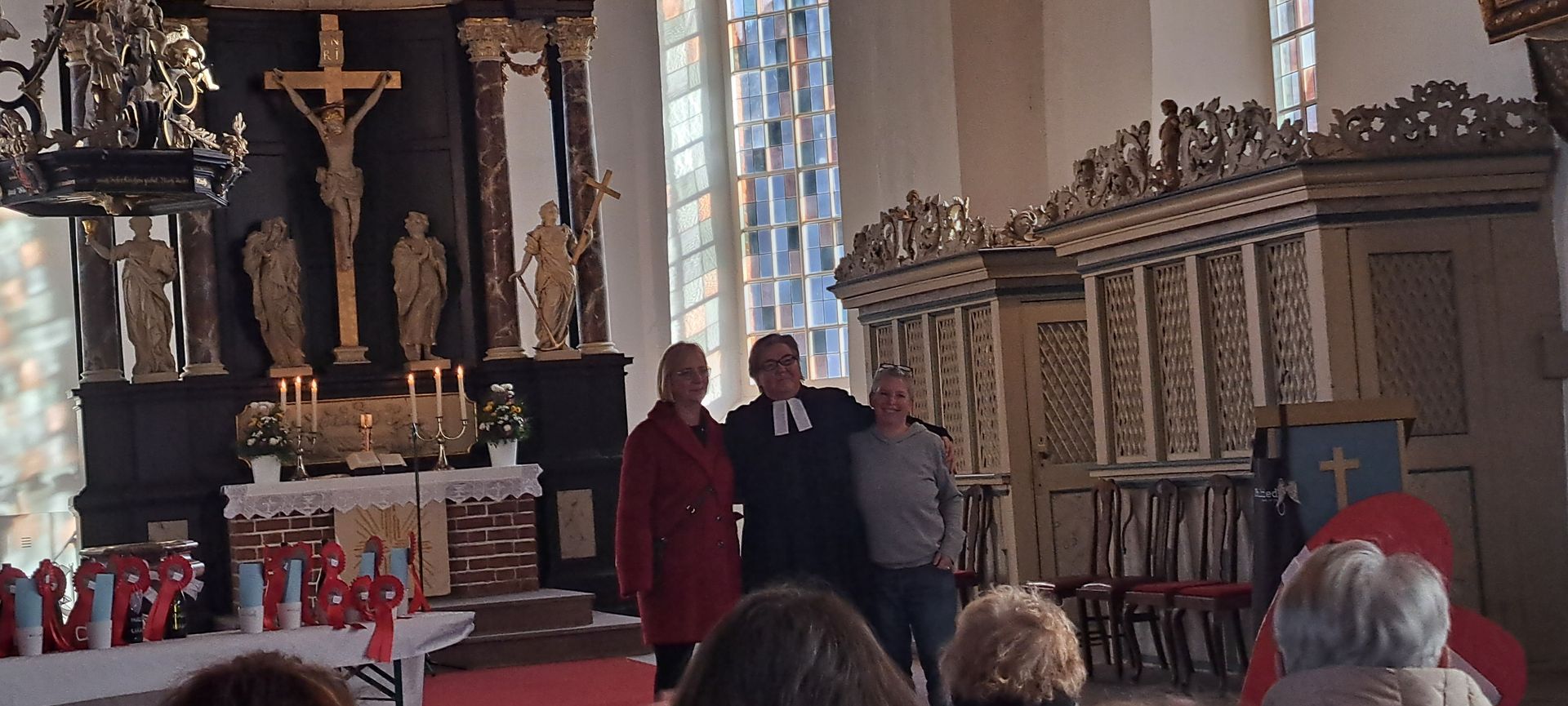 Pastorin Ina Brinkmann dankte jetzt namentlich allen, die an dieser Aktion teilgenommen haben. Jeder von ihr Aufgerufene erhielt aus den Händen von Frauke Düßmann, sowie vom KGR Maike Witthohn und Brigitte Petersen ein kleines „Danke-Präsent“, sowie Applaus der Gottestdienstbesucher.